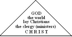 There the real power is at the top and it is shared according to one's place on the ladder up or down the pyramid. The laity are seen as on the lowest rung of the ladder, and reform or progress is understood as transfer of power, by means of a peaceful or forced "liberation" of lay people from clerical domination, so that they too are free to work upwards to "commanding" positions.